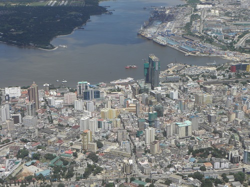Ich hätte durchaus noch einige Tage bleiben können, aber ich mache ja keinen Urlaub hier und habe noch Einiges zu erledigen. Um 4 Uhr morgens gings nach Dar es Salaam, Fr. Anicet begleitet mich, so hatte ich Gelegenheit mich wenigstens mit ihm zu treffen. Aus der ländlichen Region nach Dar zu kommen ist wie in eine andere Welt einzutreten. Die Stadt wird immer hektischer, lauter und der Verkehr scheint jedes Mal zuzunehmen. Es hat hier am Indischen Ozean 35 °C, du schwitzt den ganzen Tag. Ich bin jetzt schon froh, dass ich zunächst nur einen Tag hier bleibe, um am board meeting unseres Straßenkinderprojekts teilzunehmen. Die Stadt sieht von oben aus wie eine moderne Großstadt, in den letzten 3 Jahren wurden viele Hochhäuser gebaut.