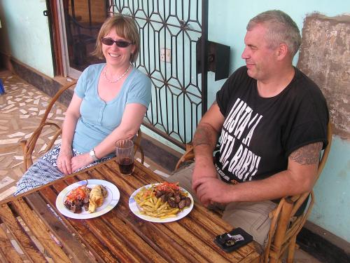 Peter ist jetzt seit fast 4 Monaten in Mtwara und kennt natürlich inzwischen die guten und billigen "Restaurants". Wir haben unser Mittagessen in einer kleinen Straßenkneipe eingenommen, wo es nyama (Fleisch) und auch frische Calamari gibt.