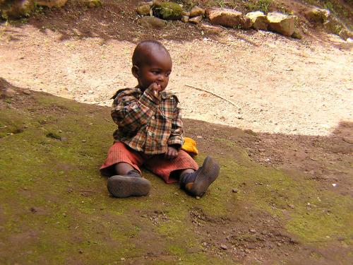 Baraka in Dar es Salaam in Behandlung. Betreut wird er von seiner Großmutter, die dazu allles