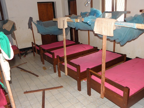 Auch wenn wir ganz entsetzt und tief berührt sind von den Verhältnissen, die wir im Waisenhaus vorfinden, so hören wir von Anneliese und Werner, dass sich die Situation seit ihrem ersten Besuch im August 2015 bereits wesentlich verbessert habe. Nachdem damals gerade einmal 4 Schwestern für 45 Kleinkinder und Babys!!! im Einsatz waren, ist es mittlerweile mit Hilfe der Spenden gelungen, zusätzlich 5 Erzieherinnen und 3 Helferinnen einzustellen. Sicher eine Verbesserung, aber noch lange keine befriedigende Situation für die Kleinen, die ohnehin schon ohne Elternliebe aufwachsen müssen. Die Schwestern der Mgolole Srs und die Helferinnen geben bestimmt ihr Bestes, aber die große Anzahl der Kinder erschwert natürlich deren Tätigkeit. Ganz zu schweigen von fehlendem Spielmaterial, bzw. komplett verrosteten und defekten Spielgeräten im Freien, die nicht benutzt werden (können). Der Besuch des Waisenhauses war für uns ein wirklich einschneidendes Erlebnis."