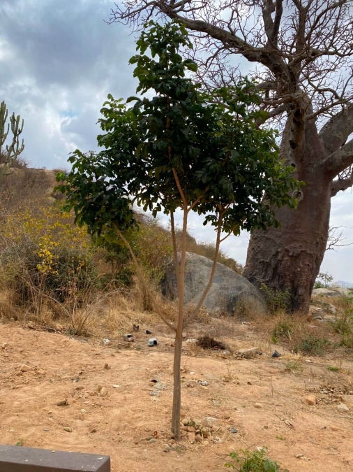 Hier ein Anschauungsbeispiel eines im Januar 2023 in Dodoma an der neuen Außenstation gepflanzten Setzlings,